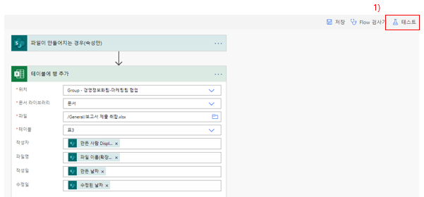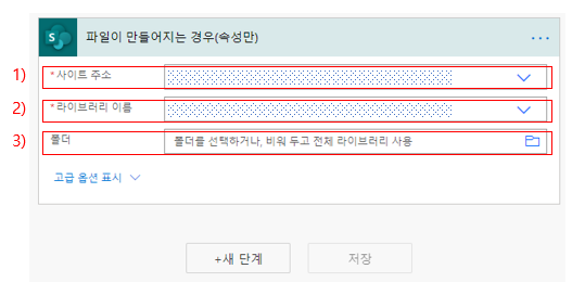 2) 라이브러리 이름은 SharePoint에서 어느 라이브러리 공간에 파일이 생성되었을 때를 인식할지를 지정해 주시면 됩니다.