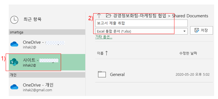 해당파일은 SharePoint에 취합할 공간으로 저장하여 업로드 해 둡니다.