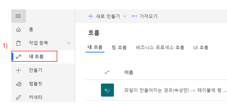 왼쪽의 [+만들기] 버튼을 클릭하고, [자동화된 흐름] 을 선택해 줍니다.